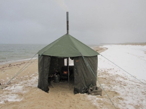 Такого рода сауна разогревается следующим образом. Камни нагреваются снаружи, например, в большом костре. Потом переносятся щипцами или ведром в центр палатки, где сделана специальная ямка. Вот и все, сауна готова к использованию.